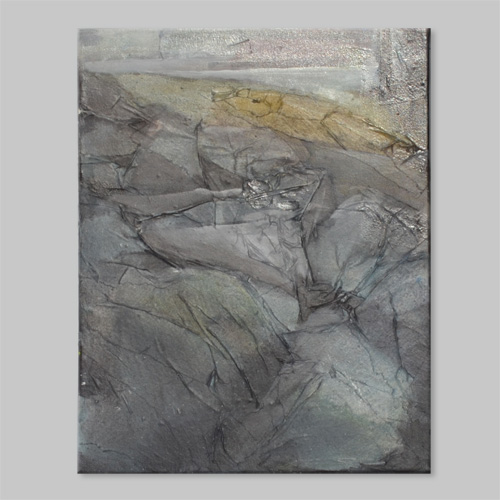 Mixed Media: acrylic paint and paper on canvas • 14″ H x 11″ W