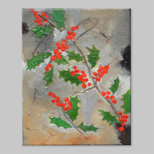 Mixed Media: acrylic paint and paper on canvas • 14″ H x 11″ W