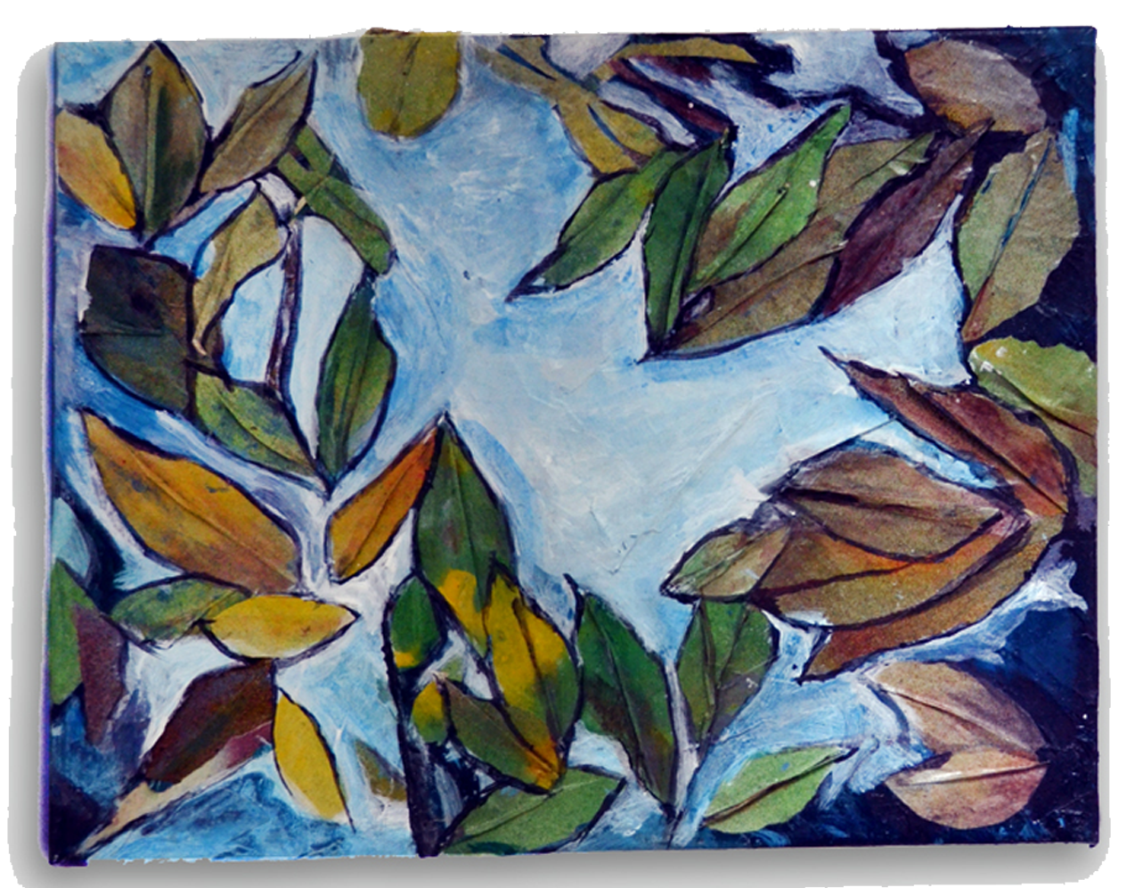 Mixed Media: acrylic paint and paper on canvas board • 8″ H x 10″ W